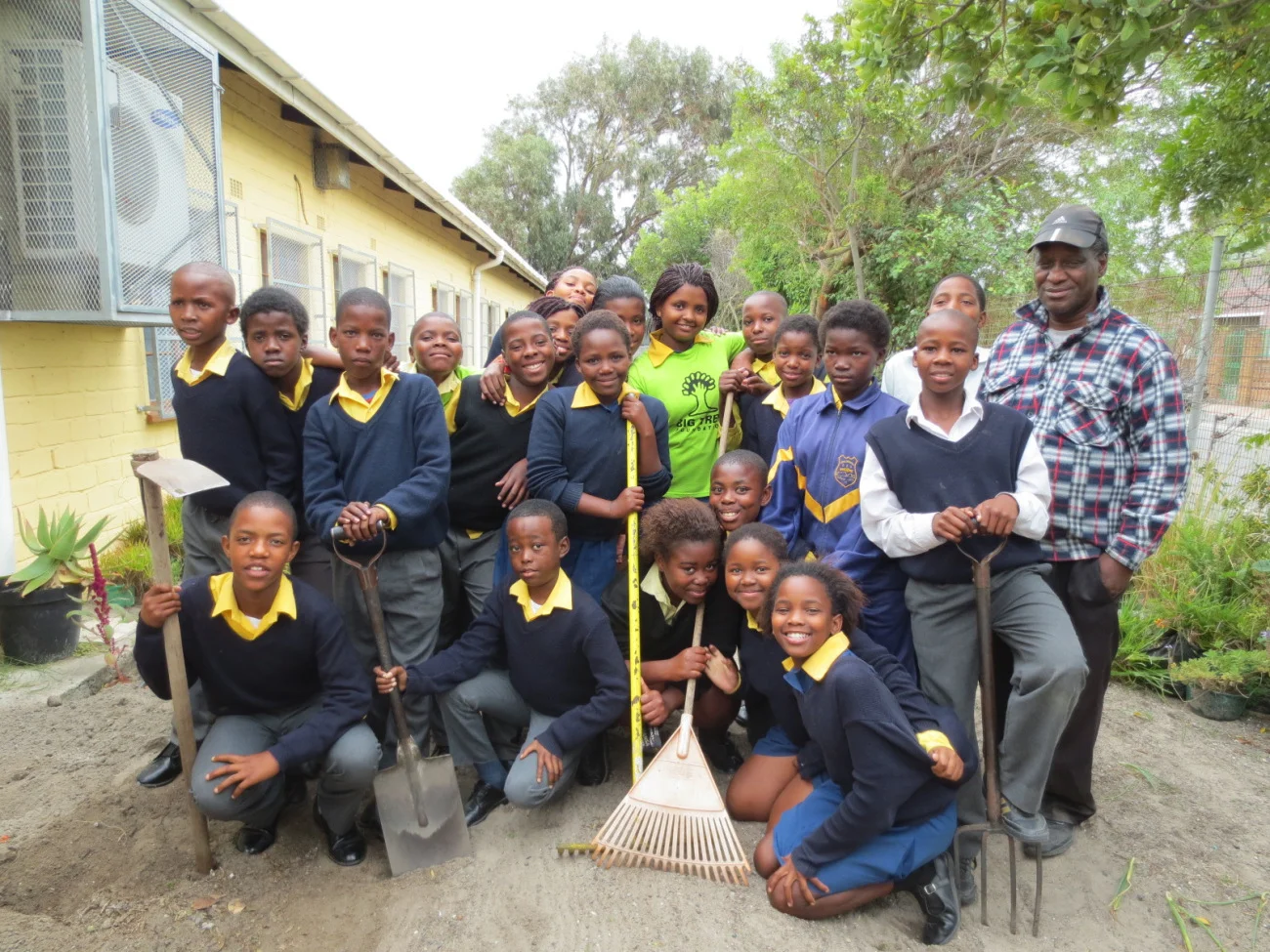 The 7th grade class at the Lehlononolo School (which means “Blessings” in Sotho) in Guguletu has taken on the responsibility of tending a garden with longtime volunteer, David. David started the garden in 2009 with government support. After a few years, government support decreased; David found himself having to use his own money to purchase seeds and seedlings to grow vegetables that enhance meals at the school. Most of the students of Lehlononolo live nearby and walk to school; enrollment is approximately 240 students from Grade R (kindergarten) to Grade 7. It is a government school so the tuition is low — about R200, or $20 per year — but does not include the additional costs of required school uniform and supplies.